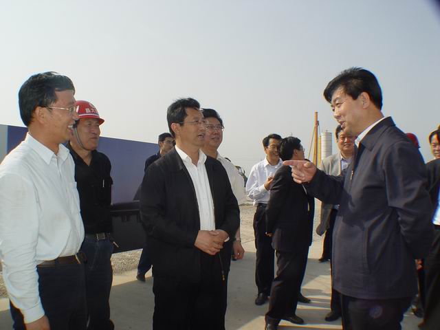右一為許立全市長 左一為濰坊昌大建設(shè)集團董事長徐鵬強 中為市建設(shè)局局長崔學(xué)選(08.03.22)