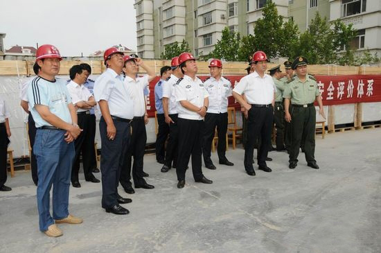 7月30日下午,市委副書記、市長許立全在市政府顧問、公安局長黃濰連和市特警支隊有關領導的陪同下,在集團公司承建的陽光大廈工地觀摩了高空消防演練。此次消防演練主要是針對我市的高層建筑逐漸增多的情況,解決高層建筑消防問題,我市耗資380多萬元新購進高空消防車,首次亮相參加演練。 集團公司副總經(jīng)理、總工程師張連悅陪同觀摩。