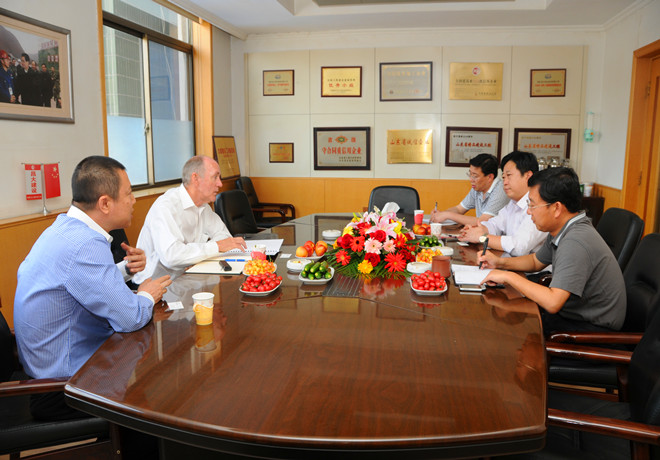 2013年5月13日上午,Gaofulimited集團(tuán)董事長(zhǎng)Geoffrey A.Ross(羅杰夫)先生應(yīng)邀到集團(tuán)公司參觀訪問。董事長(zhǎng)徐鵬強(qiáng)、總經(jīng)理朱九洲、副總經(jīng)理姜建魯熱情接待了羅杰夫先生。