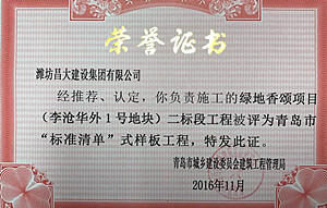 集團(tuán)青島公司綠地項(xiàng)目被評(píng)為“標(biāo)準(zhǔn)清單”樣板工程