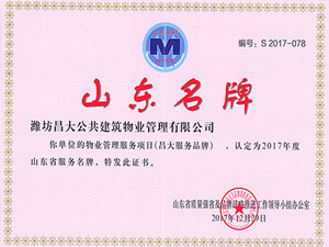 近日,山東省質(zhì)量強(qiáng)省及品牌戰(zhàn)略推進(jìn)工作領(lǐng)導(dǎo)小組辦公室發(fā)布了2017年度山東名牌,包括:山東名牌產(chǎn)品和山東省服務(wù)名牌。集團(tuán)所屬子公司濰坊昌大公共建筑物業(yè)管理有限公司的昌大服務(wù)品牌,被認(rèn)定為2017年度山東省服務(wù)名牌。