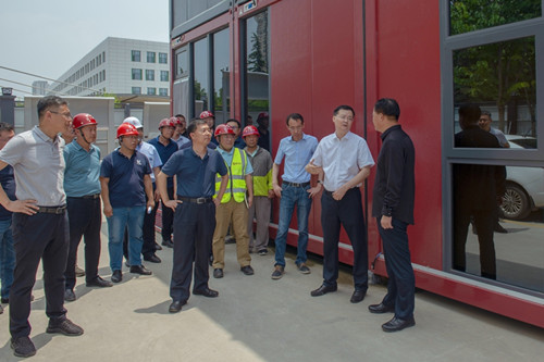 2021年6月30日上午,濰坊市副市長(zhǎng)田民利到集團(tuán)寶通街快速路項(xiàng)目指揮部調(diào)研指導(dǎo)。在指揮部,田民利通過實(shí)時(shí)畫面觀看工程情況,對(duì)集團(tuán)目前施工情況給予充分肯定,對(duì)項(xiàng)目隔音屏制作材料、制作工藝、價(jià)格等進(jìn)行了詳細(xì)調(diào)研并提出了要求。期間還參觀了集團(tuán)設(shè)在指揮部的黨校,對(duì)集團(tuán)把支部建在項(xiàng)目上強(qiáng)化黨建引領(lǐng)舉措給予贊揚(yáng)。濰坊市寶通街快速路指揮部辦公室常務(wù)副主任田太卿,濰坊市城市建設(shè)發(fā)展投資集團(tuán)有限公司副總經(jīng)理、工程總監(jiān)侯繼軍等陪同參加活動(dòng)。集團(tuán)董事長(zhǎng)徐鵬強(qiáng)、總工程師兼集團(tuán)寶通街項(xiàng)目現(xiàn)場(chǎng)總指揮房海全程陪同并匯報(bào)有關(guān)工程情況。