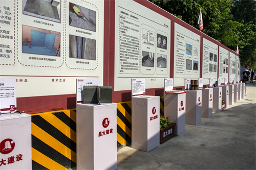 觀摩會現(xiàn)場,項目部人員結(jié)合現(xiàn)場樣板,對地下室、外墻、屋面及三小間防水做法和具體施工工藝向觀摩領(lǐng)導(dǎo)和嘉賓進(jìn)行了詳細(xì)講解。對于該項目的樣板做法,省住建廳和市級住建部門的領(lǐng)導(dǎo)與專家均給予了高度評價,并已掛省廳網(wǎng)站全省云觀摩,同時在全市范圍推廣應(yīng)用。
