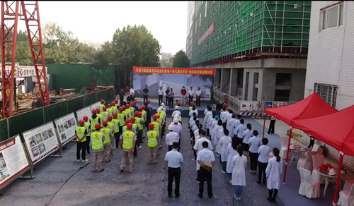 2022年9月28日上午9點58分,由集團四建公司總承包施工的東營市臨床醫(yī)技綜合實踐基地一體化建設項目——臨床醫(yī)技綜合樓封頂儀式在項目現場隆重舉行。 東營市人民醫(yī)院黨委書記徐新生、院長張振海、副院長岳長春,集團公司董事長徐鵬強、副總裁王建波,山東新開元建設項目管理有限公司董事長宗輝出席封頂儀式。東營市人民醫(yī)院黨委書記徐新生宣布“封頂”。 參加封頂儀式的還有:集團安裝公司總經理劉志偉、裝飾幕墻公司總經理付光文,四建公司副總經理叢興杰、總經理助理馬康文,建設、監(jiān)理、集團四建公司等相關單位員工代表100余人。