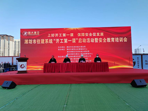 2023年2月15日上午,濰坊市住建系統(tǒng)“開工第一課”啟動活動暨安全教育培訓(xùn)會議在集團(tuán)八建公司高創(chuàng)·水緣灣項目現(xiàn)場舉行。濰坊市住建局黨組書記、局長鐘光文,濰坊市建筑業(yè)發(fā)展服務(wù)中心主任許增賢,高新區(qū)住建局局長牟軍生等出席活動。集團(tuán)公司總裁朱九洲,副總裁楊成國出席并全程參與活動。各縣市區(qū)住建局主要負(fù)責(zé)人、分管負(fù)責(zé)人,相關(guān)業(yè)務(wù)科室負(fù)責(zé)人;房地產(chǎn)開發(fā)企業(yè)、建筑施工企業(yè)、 監(jiān)理企業(yè)分管安全負(fù)責(zé)人,集團(tuán)安全生產(chǎn)部、各基層公司安全總監(jiān)、安全生產(chǎn)部全體人員共約200余人參會。