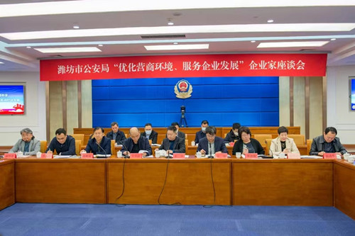 2023年3月22日下午,濰坊市公安局企業(yè)家座談會在市公安局北樓二樓電視電話會議室舉行。濰坊市副市長、市政府黨組成員、市公安局黨委書記、局長、督察長徐磊,濰坊市委統(tǒng)戰(zhàn)部副部長、濰坊市工商聯(lián)黨組書記徐鳳徽,濰坊市公安局在家領導班子,濰坊市各領域重點企業(yè)負責人,市公安局指揮中心、政治部等有關部門主要負責同志出席會議。會議通報了去年以來市公安機關有關工作情況,解讀近期市公安局出臺的服務企業(yè)相關文件,聽取了與會同志對公安機關服務企業(yè)的相關需求和意見建議,徐磊副市長講了話。會上,集團公司董事長徐鵬強對一直以來公安系統(tǒng)為企業(yè)發(fā)展營造的良好環(huán)境表示感謝,對廣大公安干警落實治安防范措施、加大掃黑除惡力度;嚴厲打擊經(jīng)濟犯罪、挽回經(jīng)濟損失;交通運輸中的指導服務;網(wǎng)警部門高效的輿情管控等諸項工作中的辛勤付出表示真誠謝意。并希望繼續(xù)加強警企共建,共同攜手抓穩(wěn)定、?保平安、促和諧,在全市拼經(jīng)濟、搞建設、抓發(fā)展中做出更大的貢獻。