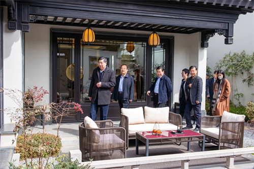 2023年3月25日上午,山東省住建廳廳長(zhǎng)王玉志到集團(tuán)中頤龍湖康養(yǎng)小鎮(zhèn)項(xiàng)目參觀(guān)調(diào)研,安丘市委書(shū)記賈勤清,市住建局黨組書(shū)記、局長(zhǎng)鐘光文、副局長(zhǎng)戴玉霞,集團(tuán)董事長(zhǎng)徐鵬強(qiáng)陪同調(diào)研。王玉志廳長(zhǎng)依次參觀(guān)了小鎮(zhèn)服務(wù)中心、頤園中式合院園區(qū)與樣板間、小鎮(zhèn)頤樂(lè)康養(yǎng)中心。聽(tīng)取了小鎮(zhèn)總體規(guī)劃布局匯報(bào),對(duì)中式合院的建筑文化、小鎮(zhèn)宜人的自然環(huán)境以及康養(yǎng)配套運(yùn)營(yíng)方面的精心考量與服務(wù)經(jīng)驗(yàn)給予了高度評(píng)價(jià)。